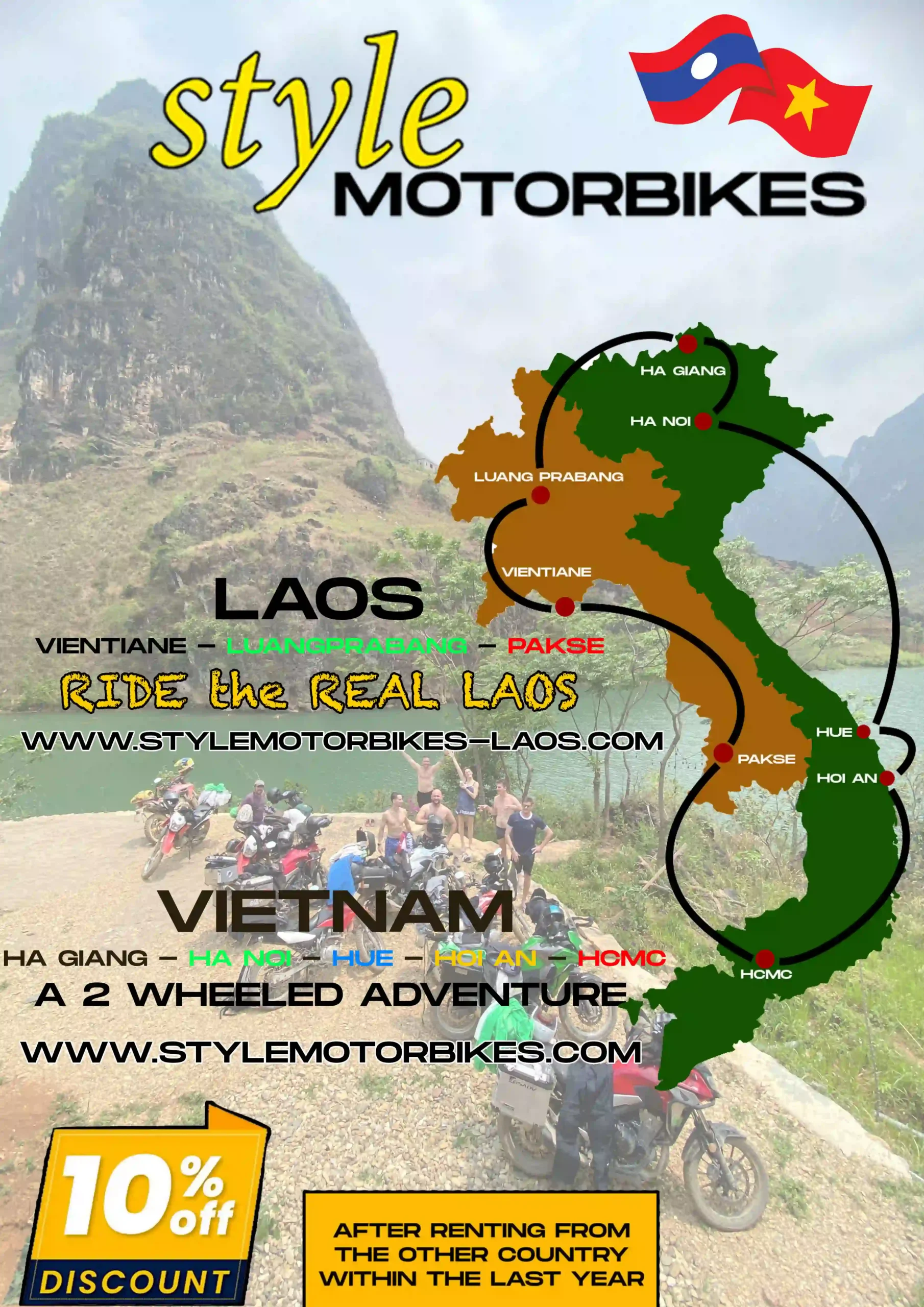 At Style Motorbikes, we operate eight shops across Laos and Vietnam, making us one of the largest motorbike rental companies in Southeast Asia.