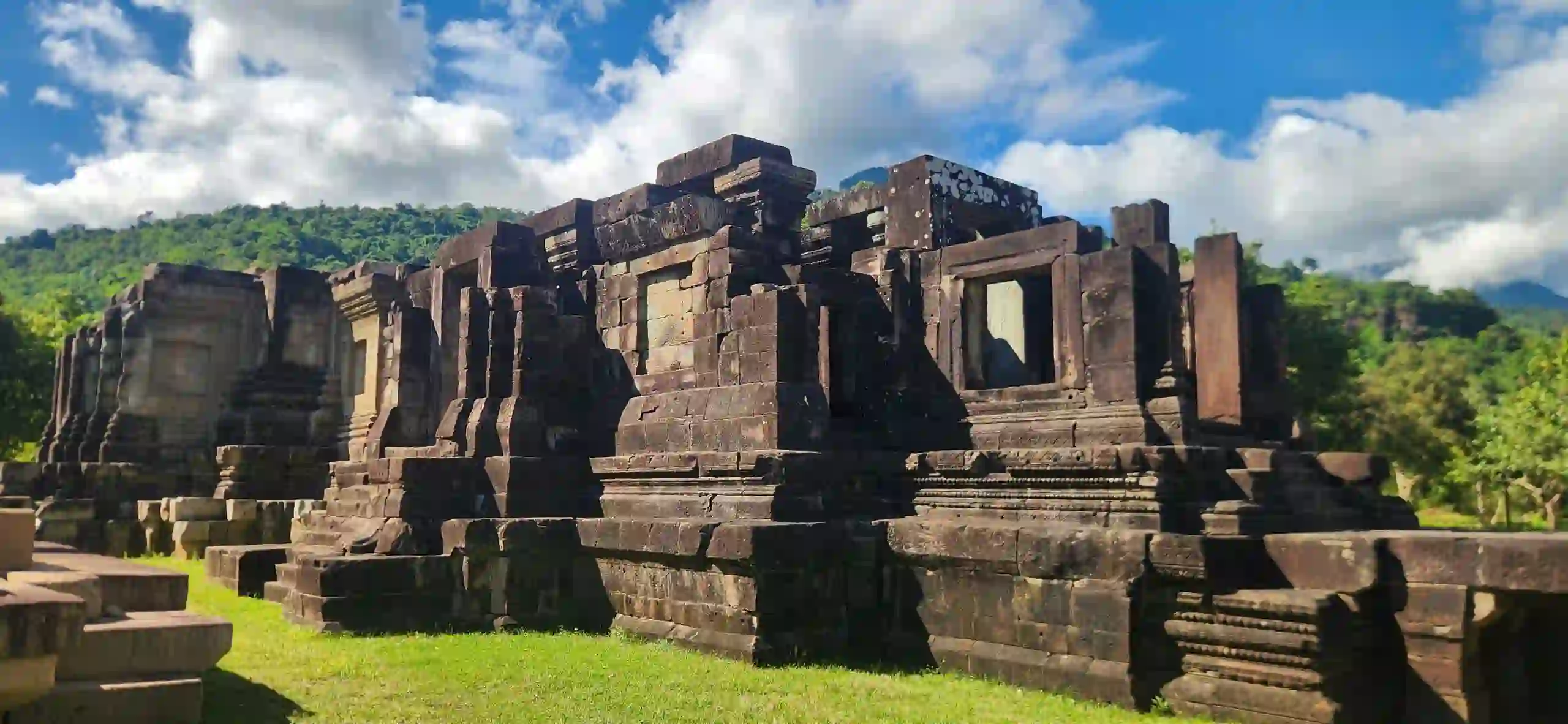 Nearby, and well worth a detour, is Vat Phou Asa. This lesser-known Khmer-era site sits on a hill above the Ban Kiat Ngong wetlands and is reached via rougher roads and a short walk. The ride out adds a touch of adventure, and the reward is a tranquil setting, atmospheric ruins, and panoramic views with almost no other visitors.