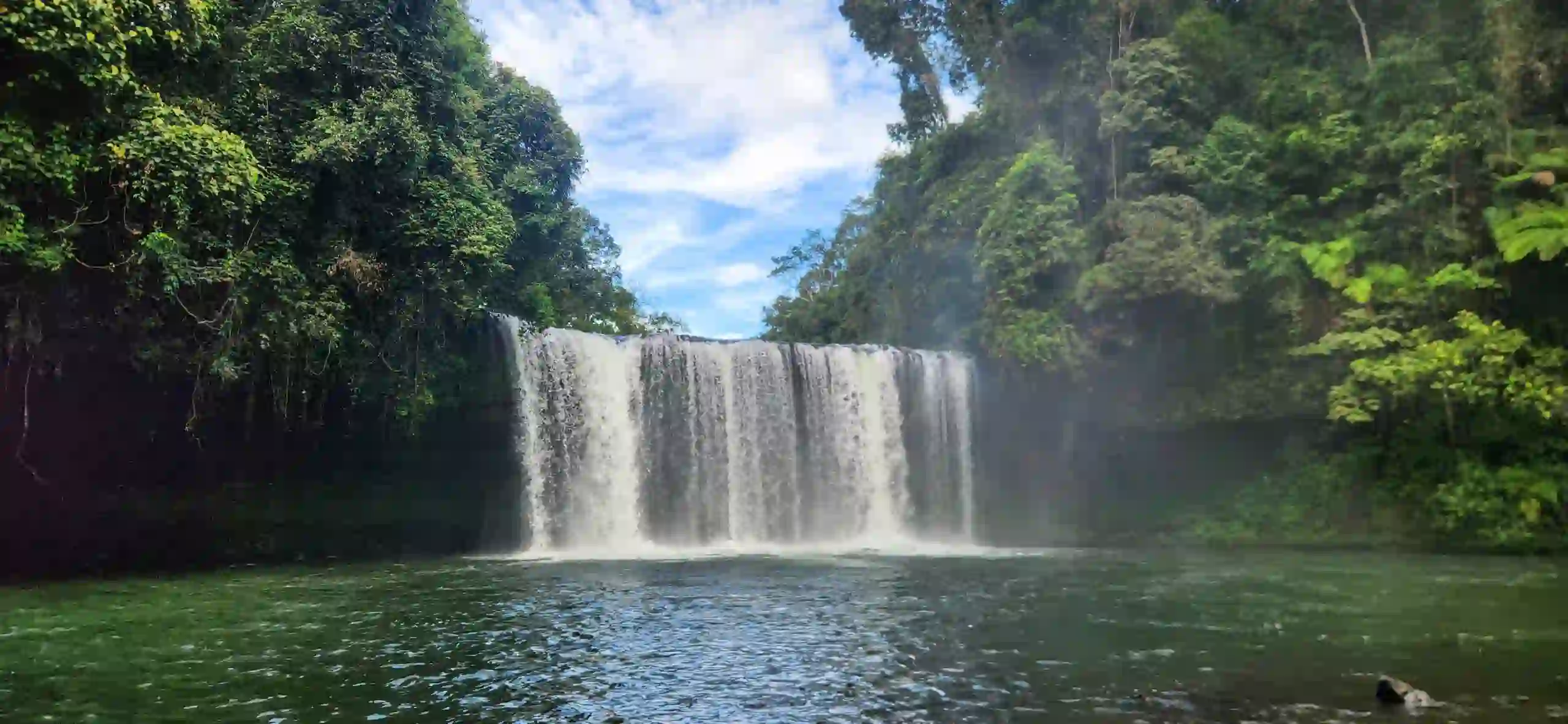 Tad Fane is the most dramatic of the group, with two powerful waterfalls plunging side by side into a deep jungle gorge. It’s one of the most photographed spots on the plateau and also home to a zip-line that crosses the canyon for those wanting a bit of adrenaline. Nearby, Tad Gneuang (often called Tad Yuang) offers towering cascades, excellent viewpoints, and one of the best swimming spots in the region, making it a favourite stop for riders looking to cool off.
